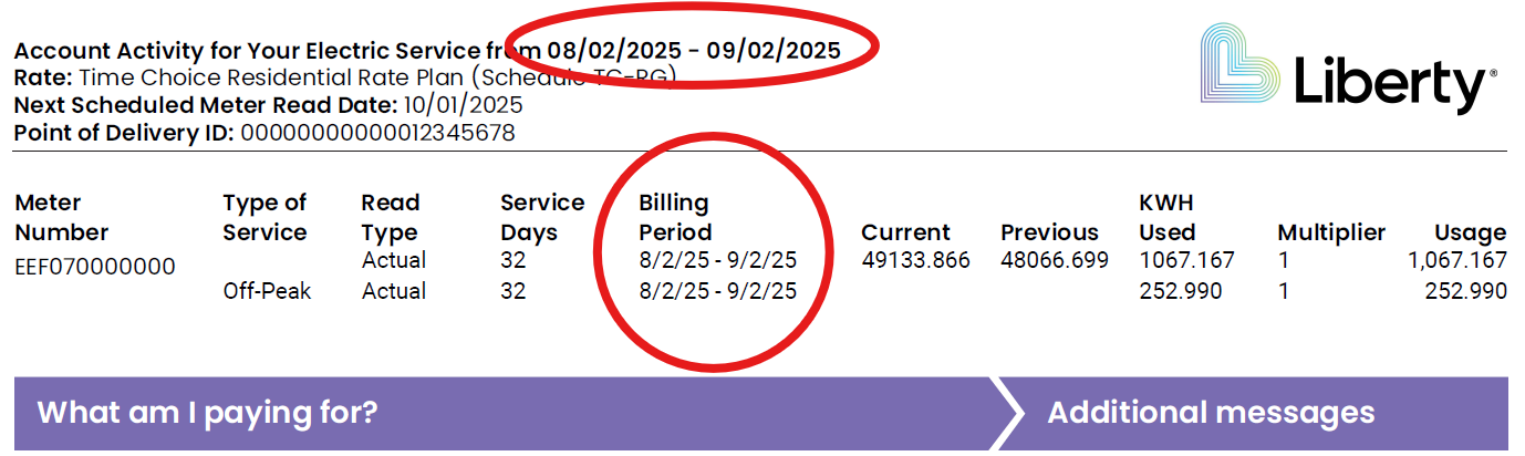 Each bill shows the billing period for your meters. You can find the billing period information on your bill directly above the “What am I paying for?” section. If you get two bills in one month because of this change, just compare the billing period dates — they’ll be different.